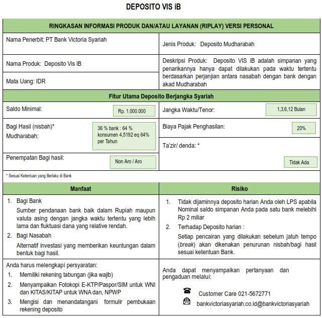 Program Deposito ViS iB Mudharabah Bank Victoria Syariah